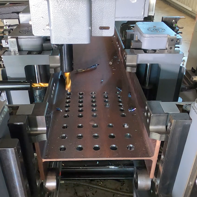 可以將TEKLA的設計直接導入內建SFM作業系統,自動轉生成加工程式,2D/3D模擬畫面,清楚明瞭。三組大馬力主軸同時加工,搭配3組刀庫,提升加工效率。可以依客戶現場產線的需求,規劃最適合的半自動、全自動產線。